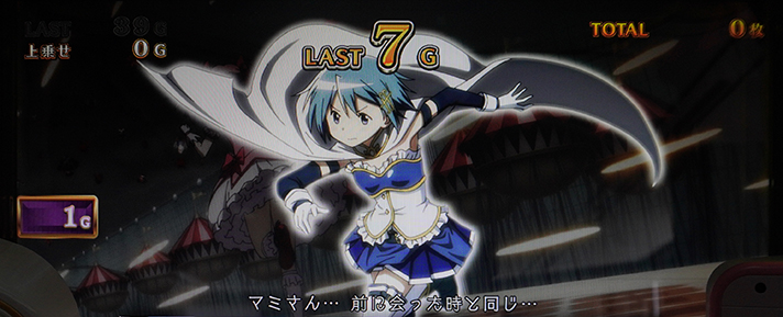 「マミ」の攻撃を「さやか」が受け止めることができれば上乗せ(継続)となる演出。「さやか」の画面割合が多いほどチャンスだが、逆に「マミ」が多い場合はピンチだ。